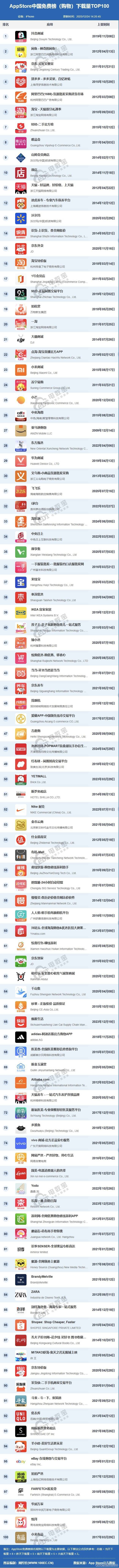 12月24日,“一带一皆”TOP10影响力社会智库——网经社电子商务计划中心发布《2025年12月AppStore中国免费榜(购物)TOP100》,该榜单是基于iphone末端的下载量数据编制而成,数据限度12月24日14:20。
